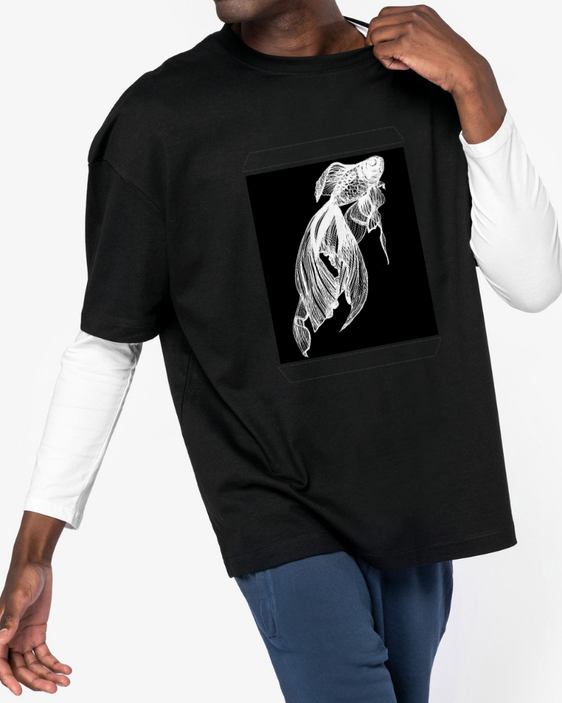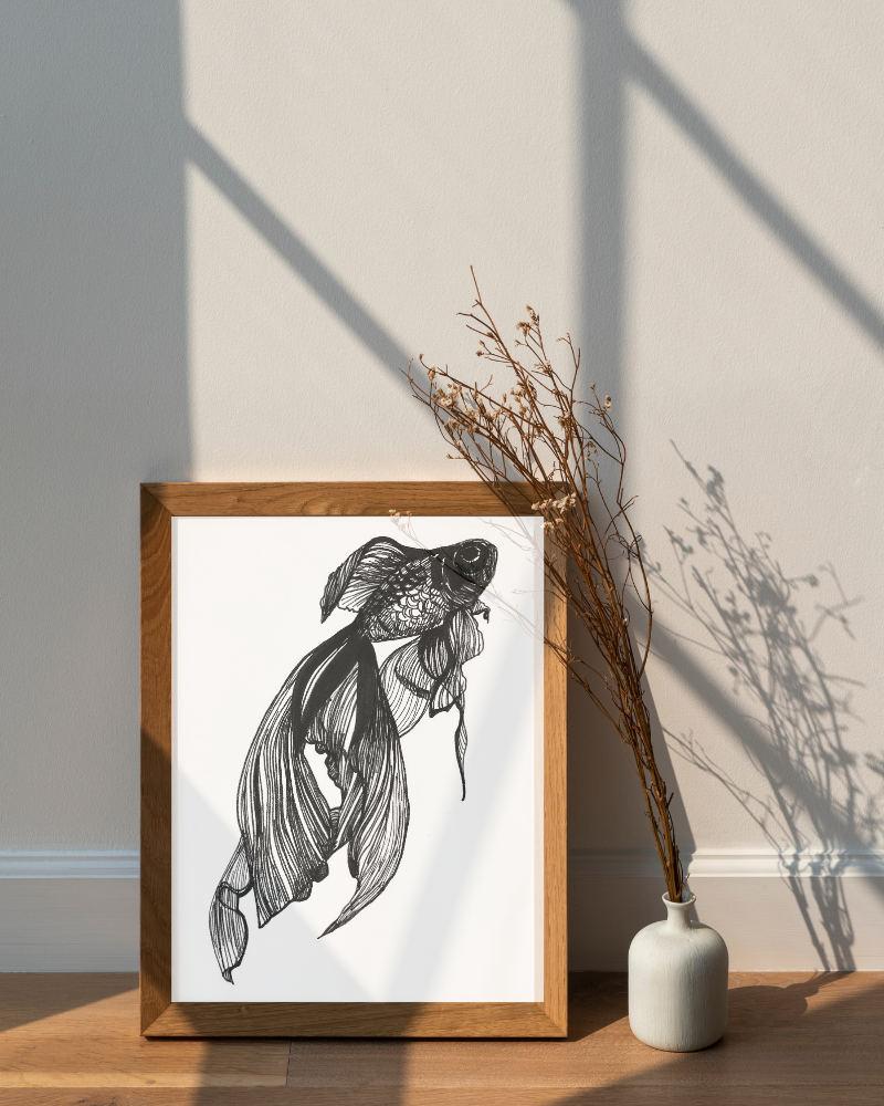 Goldfish is an elegant representation of this beloved aquatic species, known for its graceful movement and striking fin patterns.