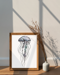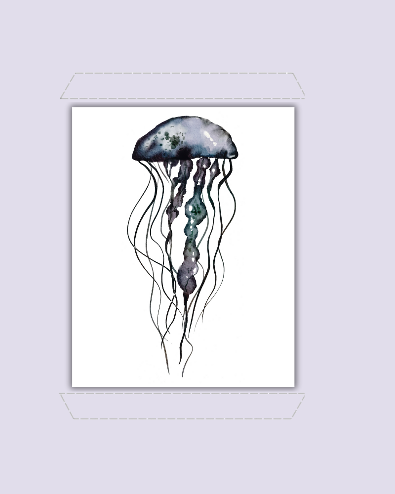 Moon Jelly captures the soft, flowing form of one of the ocean’s most delicate drifters. This intricate monochrome illustration highlights the jellyfish’s mesmerizing movement and translucent beauty.